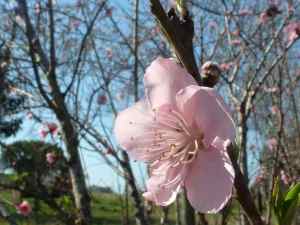 Luego decidimos caminar y terminamos entre los durazneros del huerto, florecidos ellos. Cientos de pequeñas florcitas de cinco pétalos ofreciendo a las abejas el néctar de su pecho. Botoncitos rosados rompiendo en pimpollo sin importarles si agosto es buen momento.