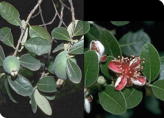 1. Hola, la primera y última foto no son de guayabo del país (acca sellowiana), sino de guayaba (psidium guajava). Como pertenecen a la misma familia, son parecidos, pero las hojas son muy diferentes.