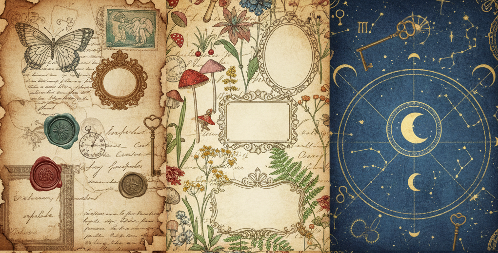 Tener un conjunto de papeles decorados con una estética definida (como botánica, mapas antiguos o caligrafía) actúa como el hilo conductor que une tus recuerdos con el arte.